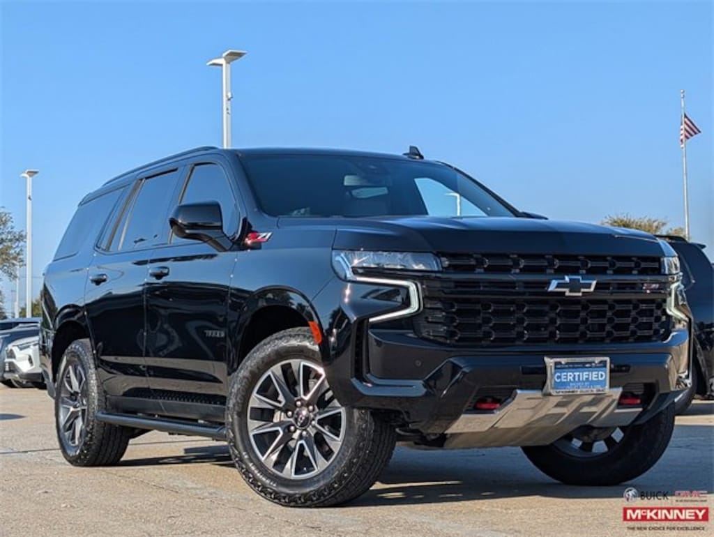 CARFAX One-Owner. Clean CARFAX. Certified.Black 2023 Chevrolet Tahoe Z71 Odometer is 4281 miles below market average!++Apple CarPlay and/or Android Auto++, **LEATHER**, Back-Up Camera, Front Parking Sensors, Rear Parking Sensors, BOSE Audio, HomeLink, Bluetooth for Phone, Power Liftgate, Power Seat, 2nd Row Bucket Seats, 3rd Row Seating, Heated Front Seats, Heated Rear Seats, **SUNROOF / MOONROOF**, Fixed Running Boards, Alloy / Aluminum Wheels, **4WD**, 4WD, Gideon/Very Dark Atmosphere Leather, 1st & 2nd Row Color-Keyed Carpeted Floor Mats, 2-Speed Active Electronic AutoTrac Transfer Case, Auto-Dimming Inside Rear-View Mirror, Black Tubular Assist Steps, Bose 9-Speaker Stereo Audio System Feature, Bright Front & Rear Door Sill Plates, Color-Keyed Carpeting Floor Covering, Driver & Front Outboard Passenger Airbags, Enhanced Driver Information Center, Floor Console w/Storage Area, Front dual zone A/C, Front High-Approach Angle Fascia, Hands-Free Rear Power Programmable Liftgate, Hill Descent Control, Infotainment Display, LED Daytime Running Lamps, Memory Settings for Driver, Preferred Equipment Group 2Z7, Red Horizontal-Mounted Recovery Hooks, Remote keyless entry, Remote Start, SiriusXM Radio w/360L, Universal Home Remote, Wireless Charging, Wrapped Steering Wheel.In order to ensure a safe experience for our customers, extended precautionary measures have been put in place. We are closely following guidelines from the Centers for Disease Control and Prevention (CDC), World Health Organization (WHO), and local government to ensure sanitary conditions for our customers. Furthermore, we continue to offer conveniences that make it easy for you to shop from home.