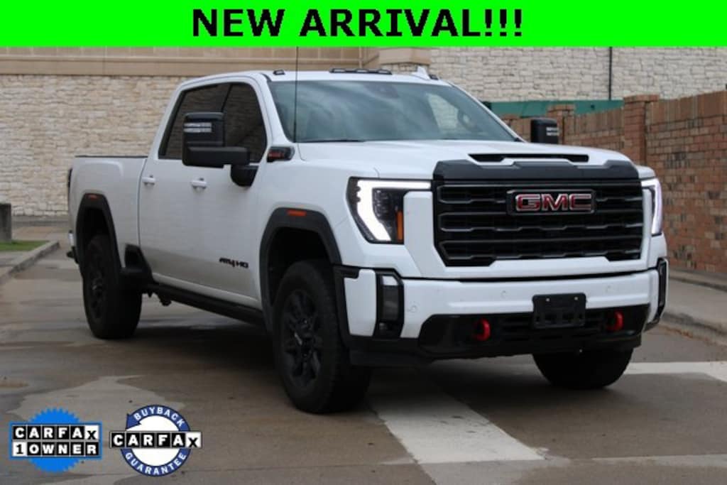 CARFAX One-Owner. Clean CARFAX.Summit White 2024 GMC Sierra 2500HD AT4 Odometer is 10227 miles below market average!++Apple CarPlay and/or Android Auto++, **LEATHER**, Back-Up Camera, Front Parking Sensors, Rear Parking Sensors, BOSE Audio, HomeLink, Bluetooth for Phone, Power Seat, Heated Rear Seats, Heated & Cooled Front Seats, Heated Steering Wheel, **SUNROOF / MOONROOF**, Power Running Boards, Tow Hitch / Pkg, Bedliner, Alloy / Aluminum Wheels, **4WD**, Blind Spot Monitor, 10-Speed Automatic, 4WD, Jet Black With Kalahari Accents Leather, 120-Volt Bed Mounted Power Outlet, 120-Volt Instrument Panel Power Outlet, 2 Charge-Only Rear USB Ports, 2 Charge/Data USB Ports Inside Center Console, 2 USB Ports, 2-Speed Active Transfer Case, Adaptive Cruise Control, AT4 Preferred Package, AT4 Premium Plus Package, Bed View Camera w/2 Trailer Camera Provisions, Bose Premium 7-Speaker Sound System, Deep-Tinted Glass, Electric Rear-Window Defogger, Floor-Mounted Center Console, Front dual zone A/C, Front Prem Floor Liners w/Removable Carpet Insert, Front Rain-Sensing Wipers, Gloss Black Header Grille & Grille Insert Bars, GMC Connected Access Capable, Gooseneck/5th Wheel Prep Package, HD Surround Vision, Heated 2nd Row Outboard Seats, Heated Driver & Front Outboard Passenger Seats, Hill Descent Control, Inside Rearview Auto-Dimming Rear Camera Mirror, Integrated Trailer Brake Controller, Keyless Open & Start, LED Cargo Area Lighting, LED Smoked Amber Roof Marker Lamps, Manual Tilt-Wheel/Telescoping Steering Column, Multicolor 15 Diagonal Head-Up Display, Off-Road High Clearance Step (LPO), OnStar & GMC Connected Services Capable, Power Front Passenger Windows w/Express Up/Down, Power Sliding Rear Window w/Defogger, Power Sunroof, Preferred Equipment Group 4SB, Push Button Start, Rear Cross Traffic Alert, Rear Prem Floor Liners w/Removable Carpet Insert, Rear Wheelhouse Liners, Remote keyless entry, Remote Vehicle Starter System, Safety Alert Seat, SiriusXM w/360L, Spray-On Bedliner w/AT4 Logo, Steering Wheel Audio Controls, Technology Package, Trailer Cam Provisions & Trailer Viewing Software, Trailer Side Blind Zone Alert, Ultrasonic Front & Rear Park Assist, Unauthorized Entry Theft-Deterrent System, Universal Home Remote, Ventilated Driver & Front Passenger Seats, Wireless Charging, Wireless Phone Projection, X31 Off-Road Package.In order to ensure a safe experience for our customers, extended precautionary measures have been put in place. We are closely following guidelines from the Centers for Disease Control and Prevention (CDC), World Health Organization (WHO), and local government to ensure sanitary conditions for our customers. Furthermore, we continue to offer conveniences that make it easy for you to shop from home.