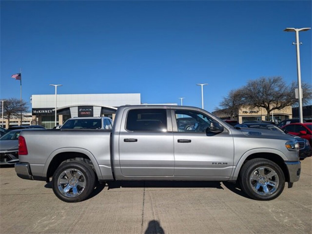CARFAX One-Owner. Clean CARFAX.Billet Silver Metallic Clearcoat 2025 Ram 1500 Big Horn/Lone Star Odometer is 22022 miles below market average!++Apple CarPlay and/or Android Auto++, Back-Up Camera, Front Parking Sensors, Rear Parking Sensors, HomeLink, Bluetooth for Phone, Power Seat, Heated Front Seats, Heated Steering Wheel, Bedliner, Alloy / Aluminum Wheels, Blind Spot Monitor, 3.0L I6 Hurricane SO Twin Turbo ESS, 115V Auxiliary Power Outlet, 2nd Row In Floor Storage Bins, 400W Inverter, Auto Power-Folding Mirrors, Auto-Dimming Exterior Driver Mirror, Auto-Dimming Rear-View Mirror, Bed Utility Group, Big Horn Level 1 Equipment Group, Black Exterior Mirrors, Black Premium Power Mirrors, Convex Wide-Angle Exterior Mirror Insert, Exterior 115V AC Outlet, Exterior Mirrors Courtesy Lamps, Exterior Mirrors w/Heating Element, Exterior Mirrors w/Supplemental Signals, Glove Box Lamp, Heated Front Seats, Heated Steering Wheel, Leather Wrapped Steering Wheel, MOPAR 4 Adjustable Cargo Tie-Down Hooks, MOPAR Spray In Bedliner, Pick-Up Box Lighting, Power 2-Way Driver Lumbar Adjust, Power Adjust 8-Way Driver Seat, Power Adjustable Pedals, Quick Order Package 21Z Big Horn, Rear Power Sliding Window, Rear Window Defroster, Steering Wheel Mounted Audio Controls, Sun Visors w/Illuminated Vanity Mirrors, Universal Garage Door Opener.In order to ensure a safe experience for our customers, extended precautionary measures have been put in place. We are closely following guidelines from the Centers for Disease Control and Prevention (CDC), World Health Organization (WHO), and local government to ensure sanitary conditions for our customers. Furthermore, we continue to offer conveniences that make it easy for you to shop from home.